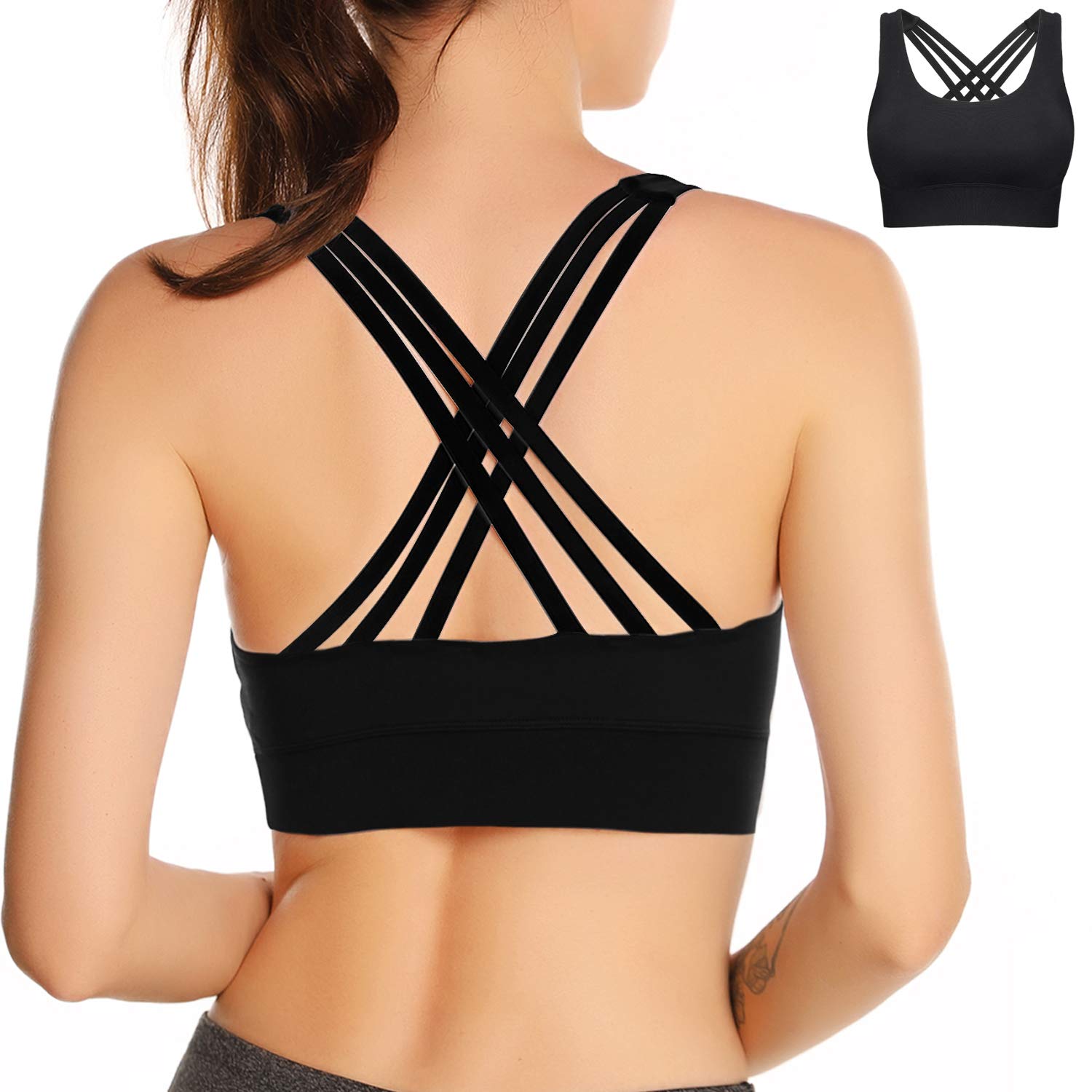 Women S Padded Sports Bra Criss Cross Back High Impact Strappy Sports Brand Definition